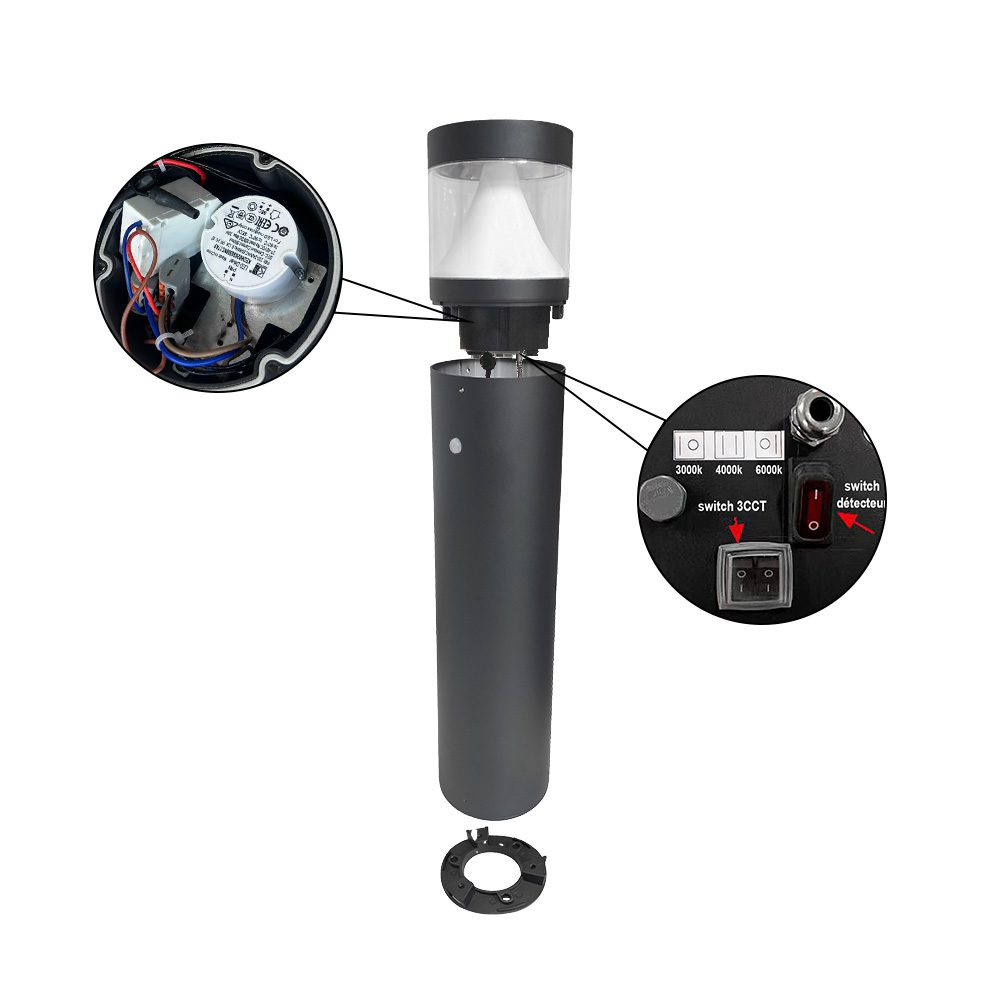 TOURS - Borne extérieure avec détecteur 20W 3CCT IP65 IK10